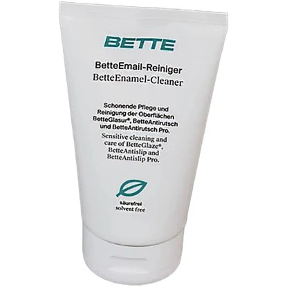 Der Bette Email-Reiniger eignet sich perfekt für die Reinigung und Pflege von Bette Badelementen bestehend aus glasiertem Titan-Stahl. Ihre brillianten Oberflächen sind langlebig und strapazierfähig. Mit dem Email-Reiniger können auch hartnäckige Kalkablagerungen schonend entfernt werden. Nicht geeignet für Badelemente mit der Oberflächenveredelung BetteGlasur® Plus.