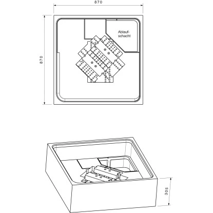 Maße Duschwannenträger (H x B x T): 30,5 cm x 87 cm x 87 cm