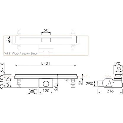 Durch den Einsatz von speziellen Dichtmanschetten (WPS) ist eine absolute Dichtigkeit bei der Installation der Duschrinne garantiert.