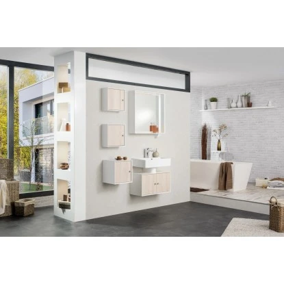 Die ix!-Serie biete viefältige Kominationsmöglichkeiten. Dieses Waschbecken kann jedoch auch mit anderen Unterschränken und Waschtischplatten kombiniert werden.