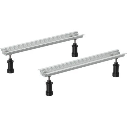 Für die Montage muss die Acrylbadewanne über ein einlaminiertes Bodenbrett verfügen. Die Maße der Füße liegen bei 25 mm x 85 mm x 550 mm (H x B x T). Das für Acrylwannen benötigte Befestigungsmaterial ist im Lieferumfang enthalten.