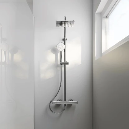 Das Ideal Standard Duschsystem mit Brausethermostat Ceratherm T100 bewährt sich mit ergonomischen Design und einem unvergleichlichen Maß an Haltbarkeit, Sicherheit und Leistung. Hier fehlt Ihnen nichts mehr zu einem perfekten Duschvergnügen.
