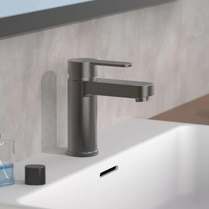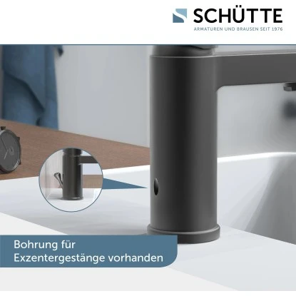 Die Schütte Waschtischarmatur Elephant Graphit-Matt verbindet ausgetüfteltes Design und die einzigartige Funktionalität . Die hochwertige Verchromung und die keramischen Dichtungsscheiben sorgen für eine lange Lebensdauer und für präzise Regelung der Durchflussmenge und der Wassertemperatur. arbeitet äußerst geräuscharm. Die komfortable Einhand-Bedienung ermöglicht mehr Bewegungsfreiheit im Waschbeckenbereich. Die Hochdruck-Armatur Elephant verfügt über einen Kalt- und einen Warmwasseranschluss. Zum Lieferumfang gehören zwei Flexschläuche und 11/4 Zoll (Ø ca. 4 cm) Stangen-Exzentergarnitur (Ablaufgarnitur). Mit Hilfe eines kleinen Hebels am Armaturenkörper wird der Auslauf geöffnet oder geschlossen. Das Schnellbefestigungsset und eine deutsche Montageanleitung machen die Installation für Sie zum Kinderspiel. Die Waschtischarmatur Elephant entspricht den Bestimmungen der deutschen Trinkwasserverordnung. Komponenten mit Wasserkontakt sind KTW und W270 geprüft. Strenge Qualitätskontrollen und hochwertige Materialien gewährleisten hohe Sicherheit und beste Wasserqualität.