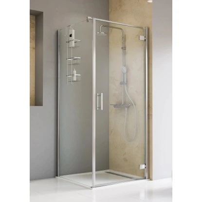 Die pendelbare Schulte Drehtür inkl. Seitenwand Toura überzeugt auf den ersten Blick mit dem starken Echtglaselementen und ihrer eleganten Teilrahmung aus Aluminiumprofilen in Chromoptik.