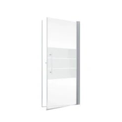 Für einen modernen Look und eine sichere Befestigung an der Montagewand dienen hochwertige Aluminiumprofile sowie ein formschöner Stabilisationsbügel in Chromoptik. Außerdem ermöglicht der elegante Stabgriff das zuverlässige Bewegen der Duschtür, dieser trägt ebenfalls die Farbe Chromoptik. Die Drehtür an Nebenteil wird zusammen mit einer Seitenwand installiert (die Seitenwand ist nicht im Lieferumfang enthalten).