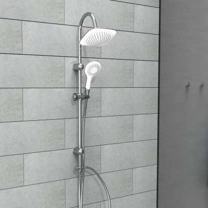Das elegante Überkopf-Brauseset Teneriffa mit verchromtem Brauseschlauch verfügt über eine Wellness-Überkopfbrause in Weiß-Chrom, die ein entspannendes Duscherlebnis garantiert. Außerdem bietet das Set eine Handbrause mit 5 praktischen Funktionen.